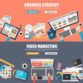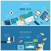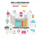 Płaska konstrukcja pojęcia biznes marketing, wirusowe wideo produkcji, marketingu, kampanii, internet średniej masowej komunikacji, udostępnianie multimediów cyfrowych. Koncepcji sieci web transparent i materiały drukowane.