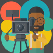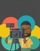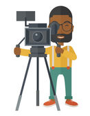 Zdjęcie "Cameraman with movie camera." może być wykorzystywane do celów osobistych i komercyjnych zgodnie z warunkami zakupionej licencji Royalty-free. Obraz jest dostępny do pobrania w jakości wysokiej rozdzielczości do 5760x3840.