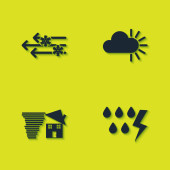 Zestaw ikon Prognoza pogody z domu, samochodu i drzewa na zewnątrz w cienkie płaskie styl.
