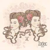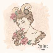 Znak zodiaku. Ilustracja wektorowa Taurus jako dziewczyna z kwiatami. Desi