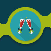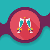 Walentynki szampana płaski ikona z długim cieniem, eps10