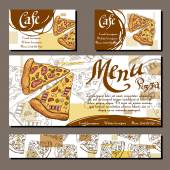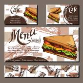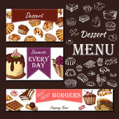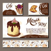 Szablon z ręcznie rysowane szkic piekarni. Może służyć jako styl identyfikacji wizualnej dla kawiarni lub restauracji. Ilustracja wektorowa. Deser karty z sweet bakery.