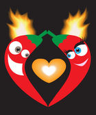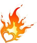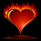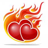 Bright red burning heart love Valentine's day. The two cute monk