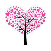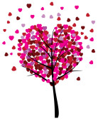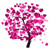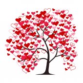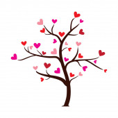 Stylised young tree on the pale blue background with leaves in the form of colorful small hearts for Valentine's day in the vector