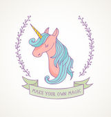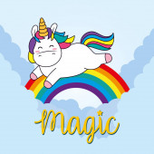 ładny magiczne unicon i tęczy plakat, karty z pozdrowieniami
