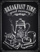 Sztuka plakatu. Czas na śniadanie. Zestaw kawa, herbata i piekarnia