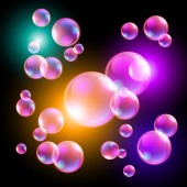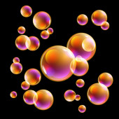 kolorowych baniek mydlanych na czarnym tle ilustracji wektorowych
