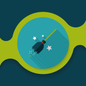 czarownica szczotka płaska ikona z długim cieniem, eps10