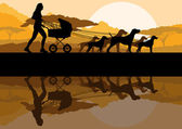 chodzenie, bieganie i jazda na rowerze w natura park pejzaż tło wektor