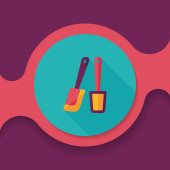 Pies szczotka płaska ikona z długim cieniem, eps10