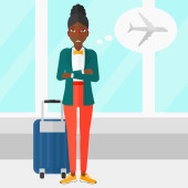 Zdjęcie "Kobieta stojąc z walizką i posiadający bilet." może być wykorzystywane do celów osobistych i komercyjnych zgodnie z warunkami zakupionej licencji Royalty-free. Obraz jest dostępny do pobrania w jakości wysokiej rozdzielczości do 5760x3840.