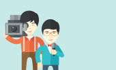 Zdjęcie "Cameraman with movie camera." może być wykorzystywane do celów osobistych i komercyjnych zgodnie z warunkami zakupionej licencji Royalty-free. Obraz jest dostępny do pobrania w jakości wysokiej rozdzielczości do 5760x3840.