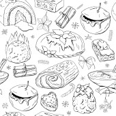 Zdjęcie "Bezszwowy wzór z różnymi ciastek." może być wykorzystywane do celów osobistych i komercyjnych zgodnie z warunkami zakupionej licencji Royalty-free. Obraz jest dostępny do pobrania w jakości wysokiej rozdzielczości do 5760x3840.