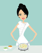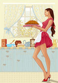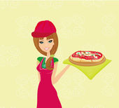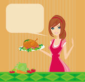 Piękna kelnerka serwująca kurczaka
