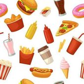 Zdjęcie "Fast foody wzór z słodycze, cukierki, babeczki i hamburgery" może być wykorzystywane do celów osobistych i komercyjnych zgodnie z warunkami zakupionej licencji Royalty-free. Obraz jest dostępny do pobrania w jakości wysokiej rozdzielczości do 5760x3840.