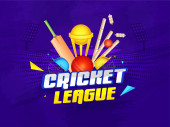 Błyszczący nietoperzy z piłkę krykieta ligi Concept.