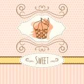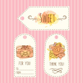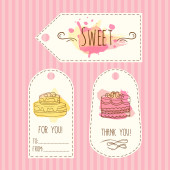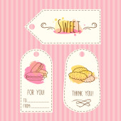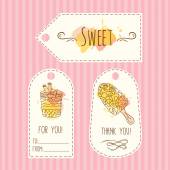 Tagi z pączka ilustracja. Wektor ręcznie rysowane etykiety zestaw akwarela plamami. Słodki wektor wypieki