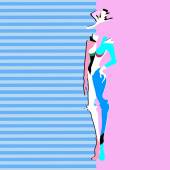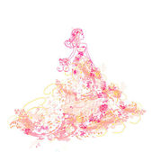 Streszczenie portret dziewczynki w kapeluszu z pink rose i sukienka, kwiatowy, moda