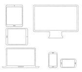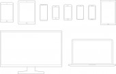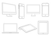 mobilne, tabletki, notebook, komputer linia zestaw ikon