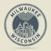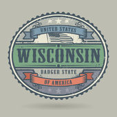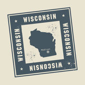 Pieczęć z nazwą i mapę z Wisconsin, Stany Zjednoczone Ameryki