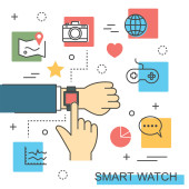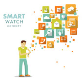 Biznesmen cieszyć się z jego pokładzie smartwatch.