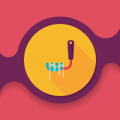 Pies szczotka płaska ikona z długim cieniem, eps10