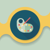 sztuka palety z farby pędzel płaski ikona z długim cieniem, eps 10