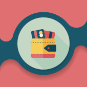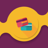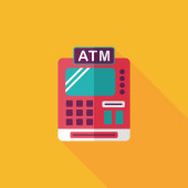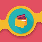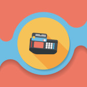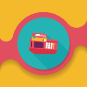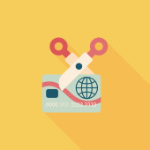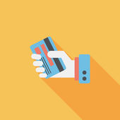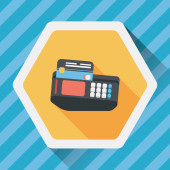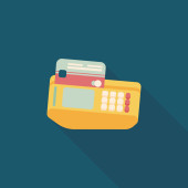 Zakupy kartą kredytową maszyny płaskie ikona z długim cieniem, eps10