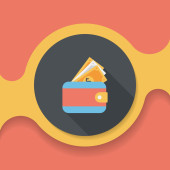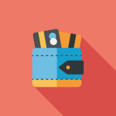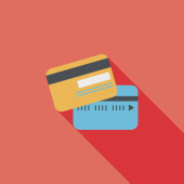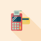 Zakupy kartą kredytową maszyny płaskie ikona z długim cieniem, eps10