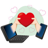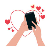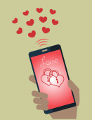 ilustracja komórek mobilnych osób w wirtualny romans. Idealny do katalogi, przewodniki informacyjny i instytucjonalnych