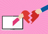 ilustracja komórek komórkowych i notatnik, ludzie w miłości separacji wirtualnych. Idealny do katalogi, przewodniki informacyjny i instytucjonalnych