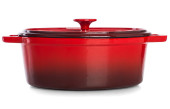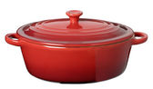 Czerwony żeliwa gotowanie garnek, na białym tle.