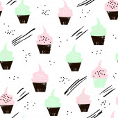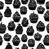 Vintage wzór sylwetka cukierki ciasta i puchary. Ręka dr
