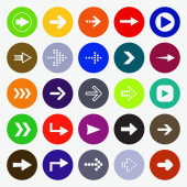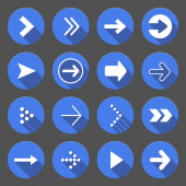 Arrow sign icon set. Simple circle shape internet button on gray background. Contemporary modern style. Vector illustration