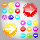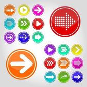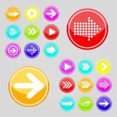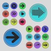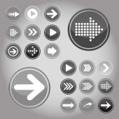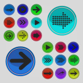 Arrow sign icon set. Simple circle shape internet button on gray background. Contemporary modern style. Vector illustration