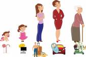 Człowiek starzenia od niemowląt do seniorów. Dziecko, dziecko, nastolatek, student, dorosły człowiek i starszy mężczyzna.